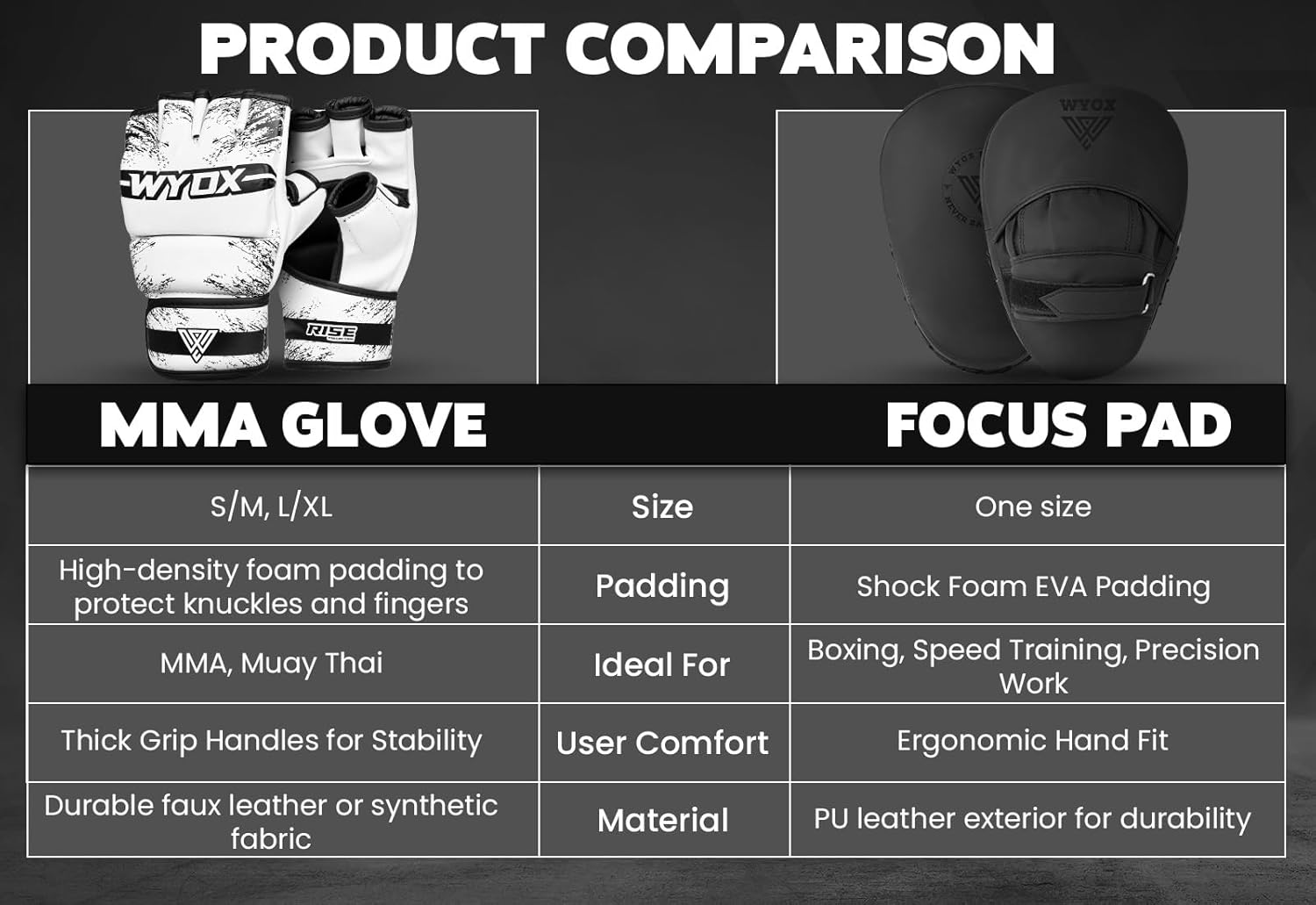 WYOX MMA Gloves for Men & Women u2013 Grappling & Sparring Boxing Gloves with Open Palm Design, Padded Fingerless Training Gloves for Kickboxing, Muay Thai