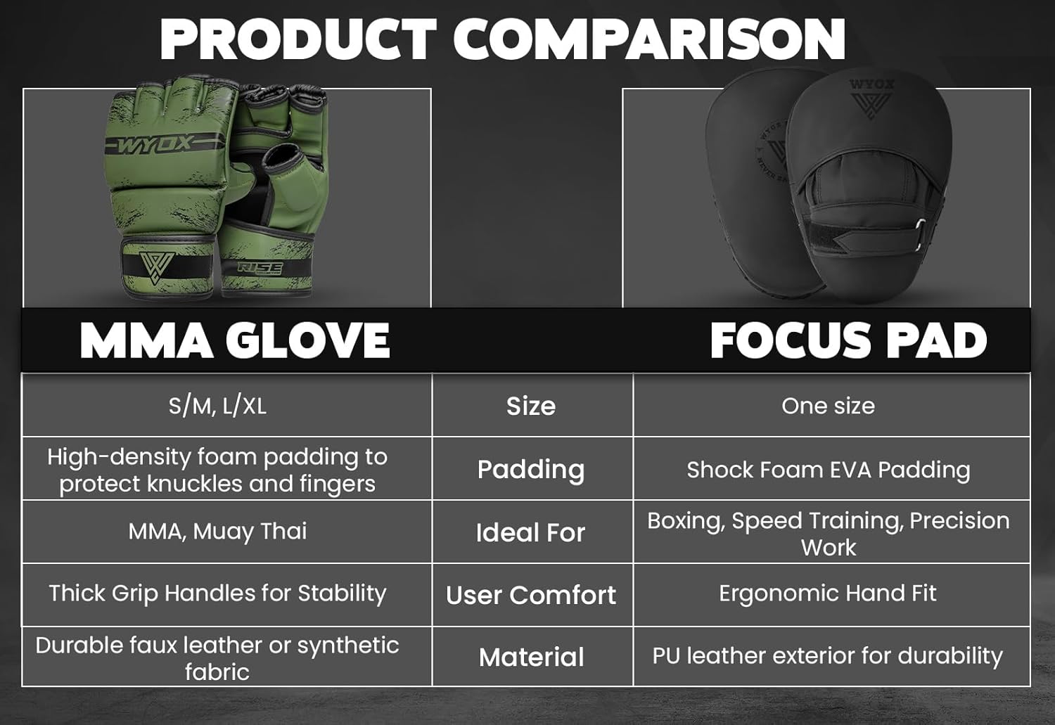 WYOX MMA Gloves for Men & Women u2013 Grappling & Sparring Boxing Gloves with Open Palm Design, Padded Fingerless Training Gloves for Kickboxing, Muay Thai